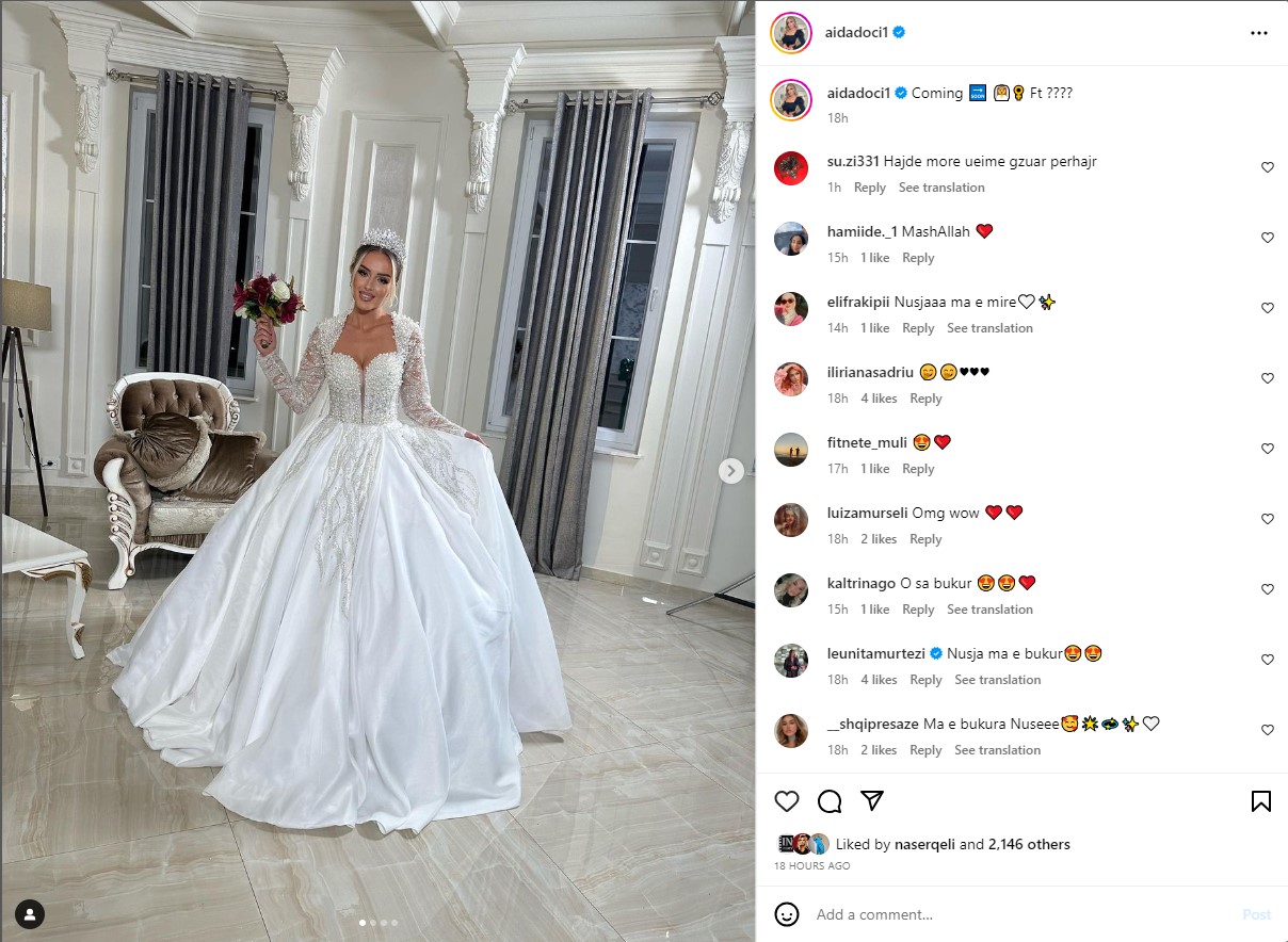 Ajo publikoi disa foto në të cilat mori vëmendje teksa u shfaq e veshur me fustanin e bardhë të nusërisë.
