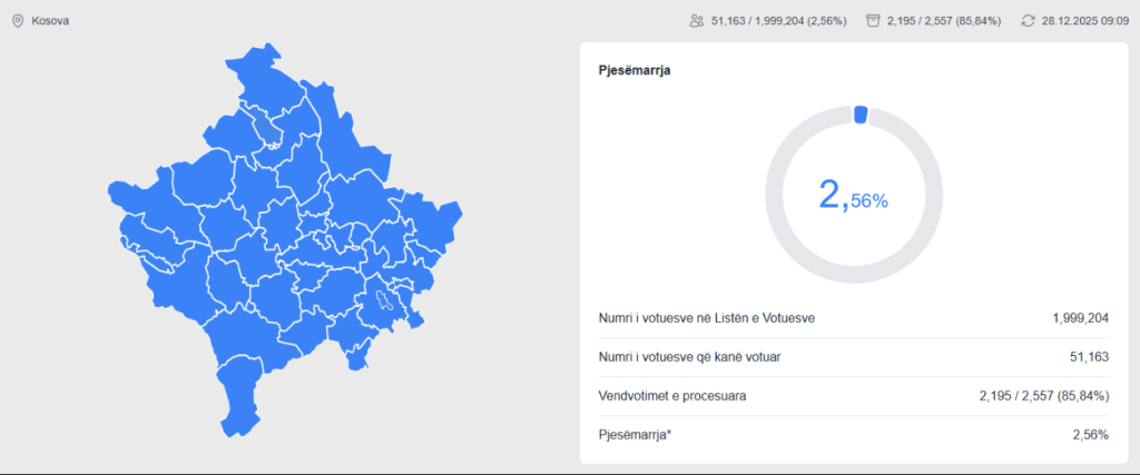 Sipas të dhënave, deri më tani kanë votuar 51,163 qytetarë, apo 2,56%